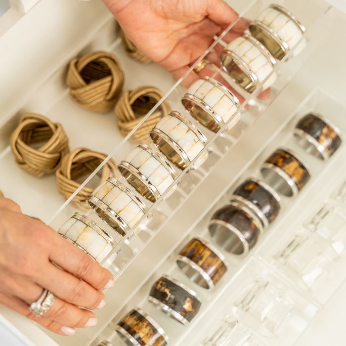 Nossos organizadores são modulares e podem ser usados em qualquer posição dentro da gaveta ou prateleira. Todas as peças tem altura padrão de 5cm.