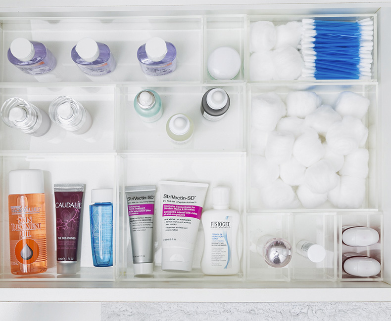 Nossos organizadores são modulares e podem ser usados em qualquer posição dentro da gaveta ou prateleira. Todas as peças tem altura padrão de 5cm.